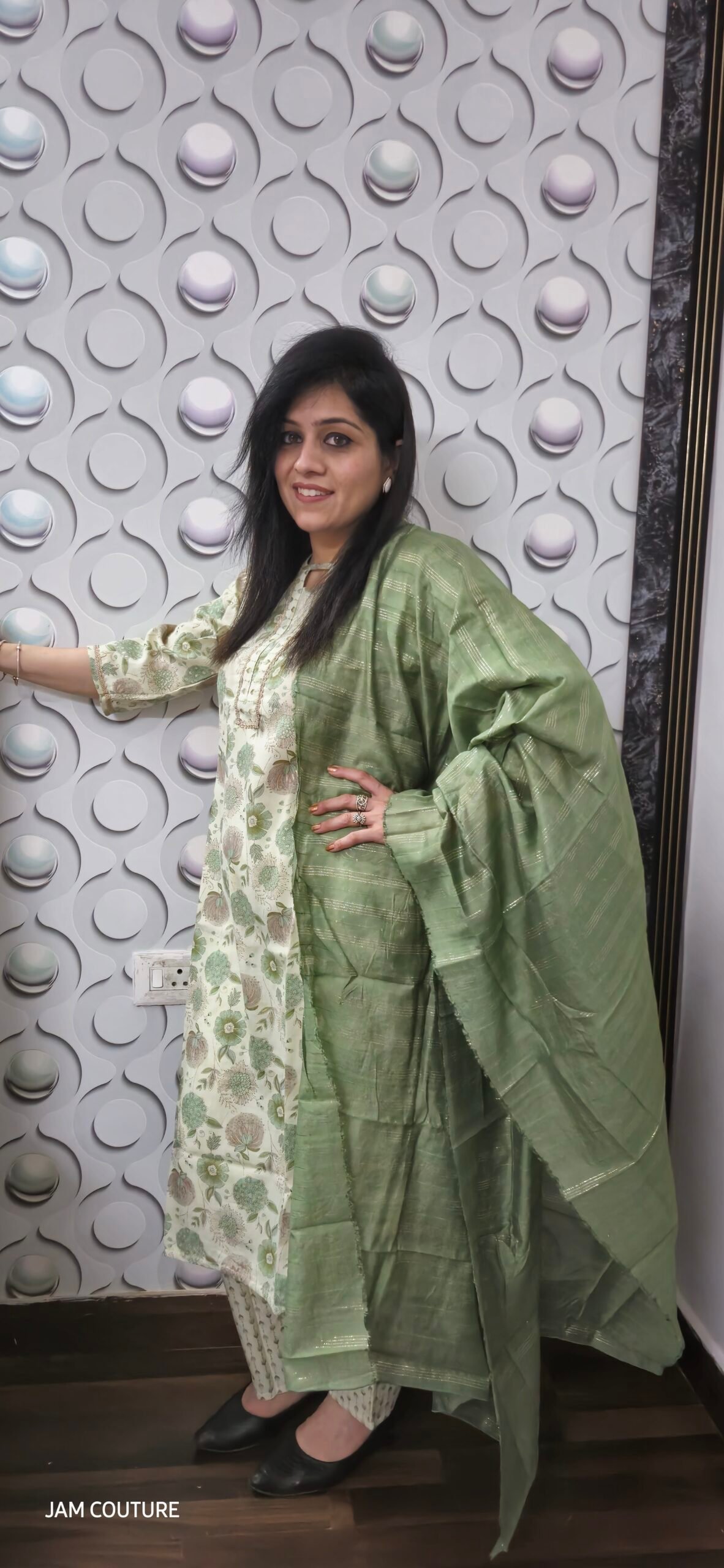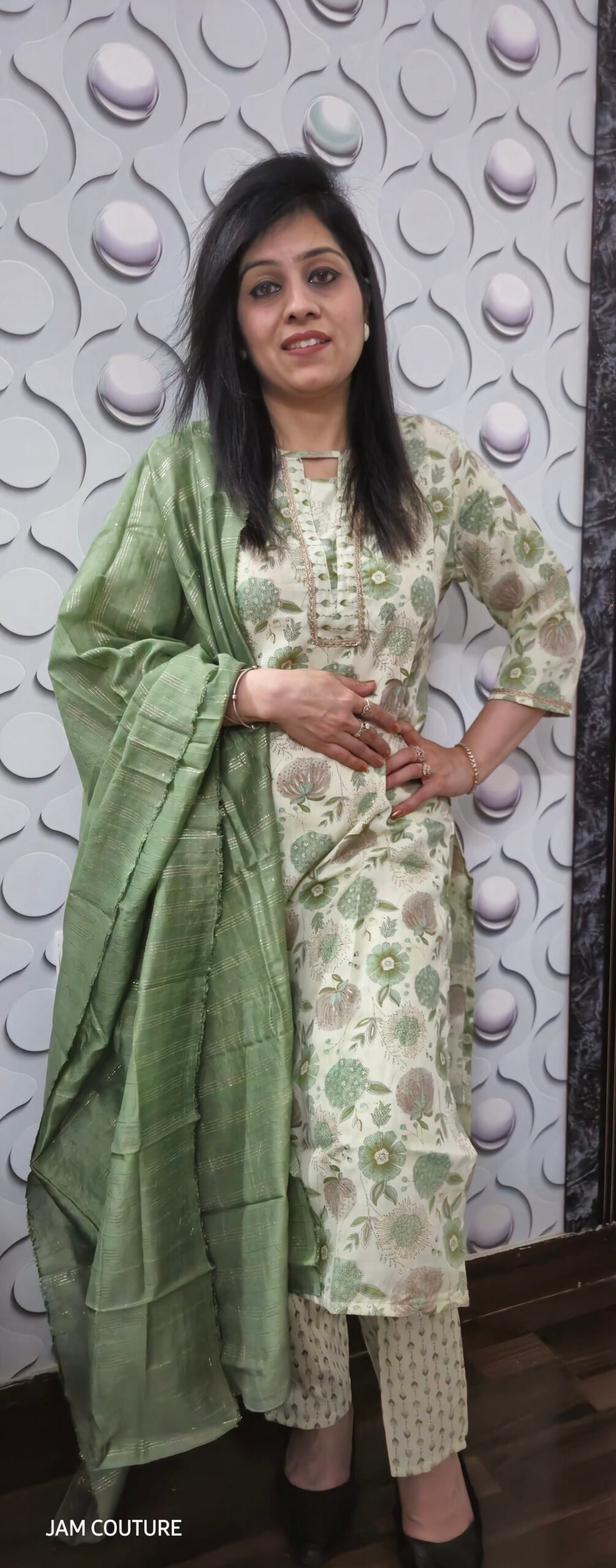 With its soft texture and relaxed silhouette, this suit is a perfect blend of comfort and sophistication. Whether you’re stepping out for a brunch, a daytime event, or a casual get-together, this ensemble ensures a chic and refreshing look all day long.