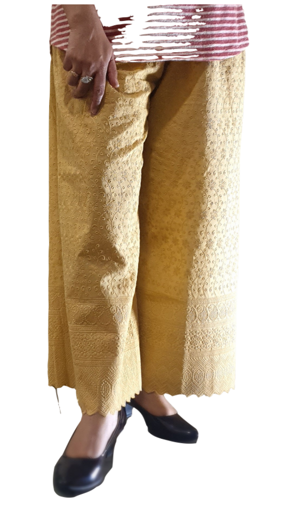 Enhance your ethnic wardrobe with this graceful and timeless chikankari palazzo, designed for the modern woman who loves comfort with style!