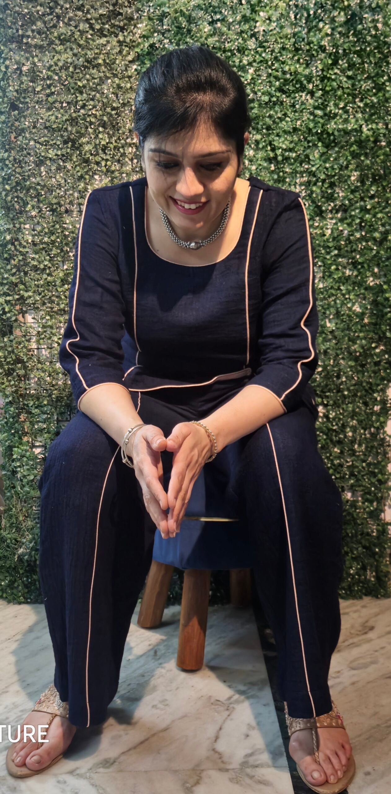 Turn heads this summer with our Denim Charm Cord Set, crafted from soft, breathable cotton denim fabric for that perfect balance of comfort and edge. The rich blue base is beautifully accented with slick pink piping, adding a playful pop of color that makes this set truly irresistible.