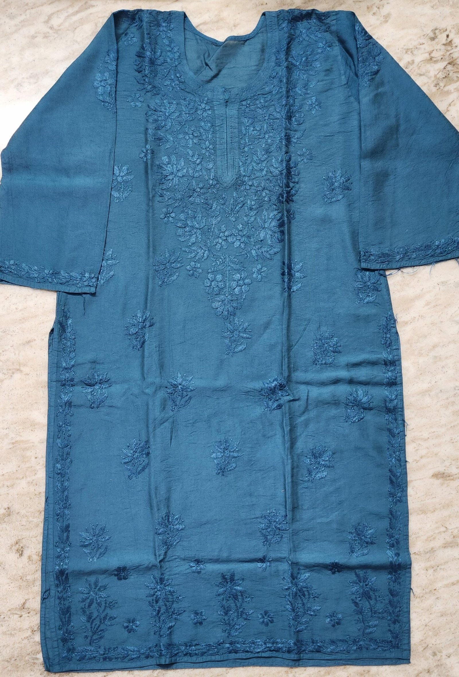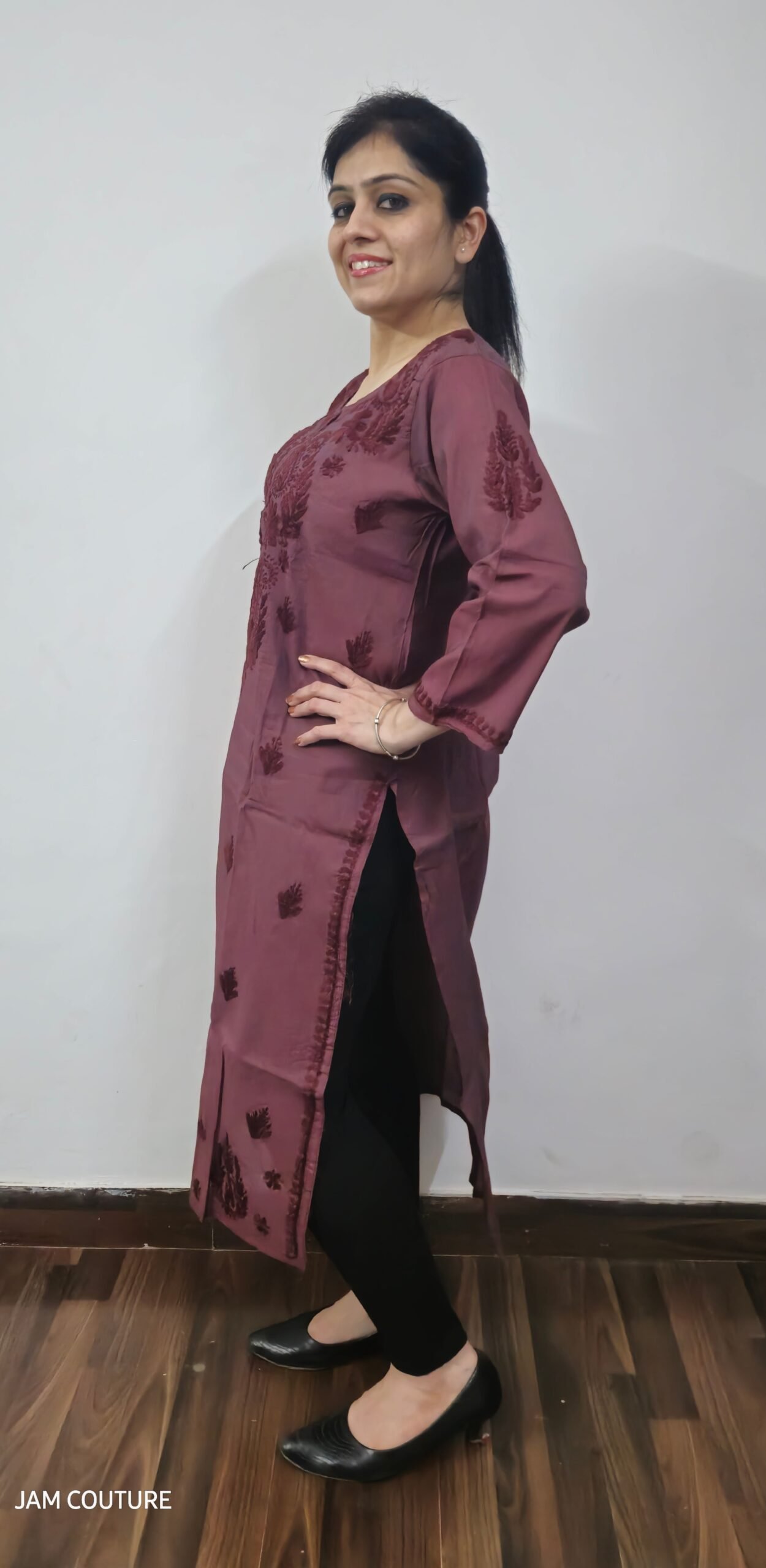The intricate Lucknowi embroidery adds a touch of grace and tradition, making it ideal for everyday wear, casual outings, or workwear. Its timeless design pairs beautifully with leggings, palazzos, or jeans, ensuring a versatile and elegant look.