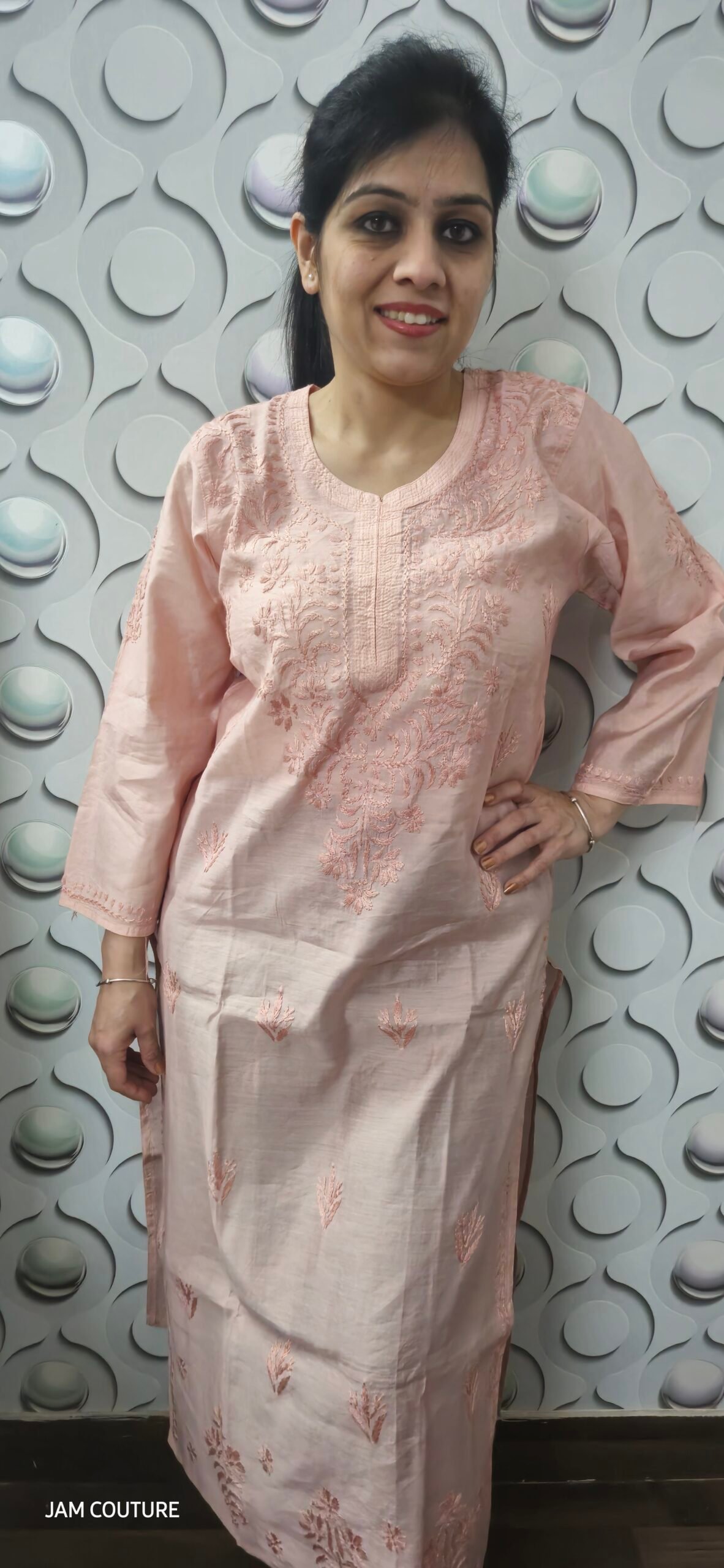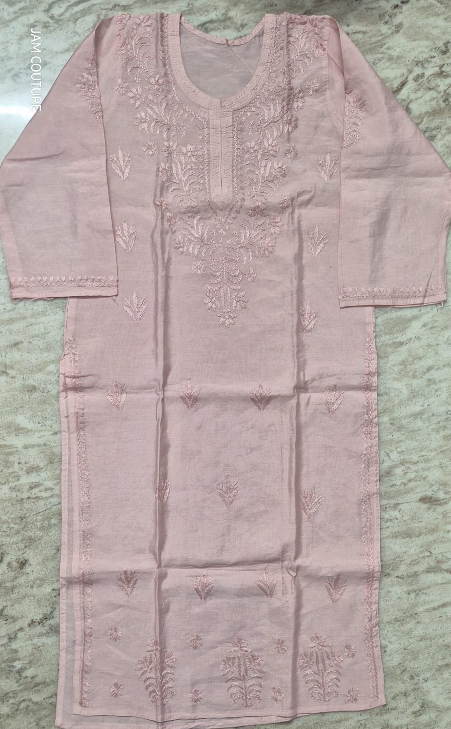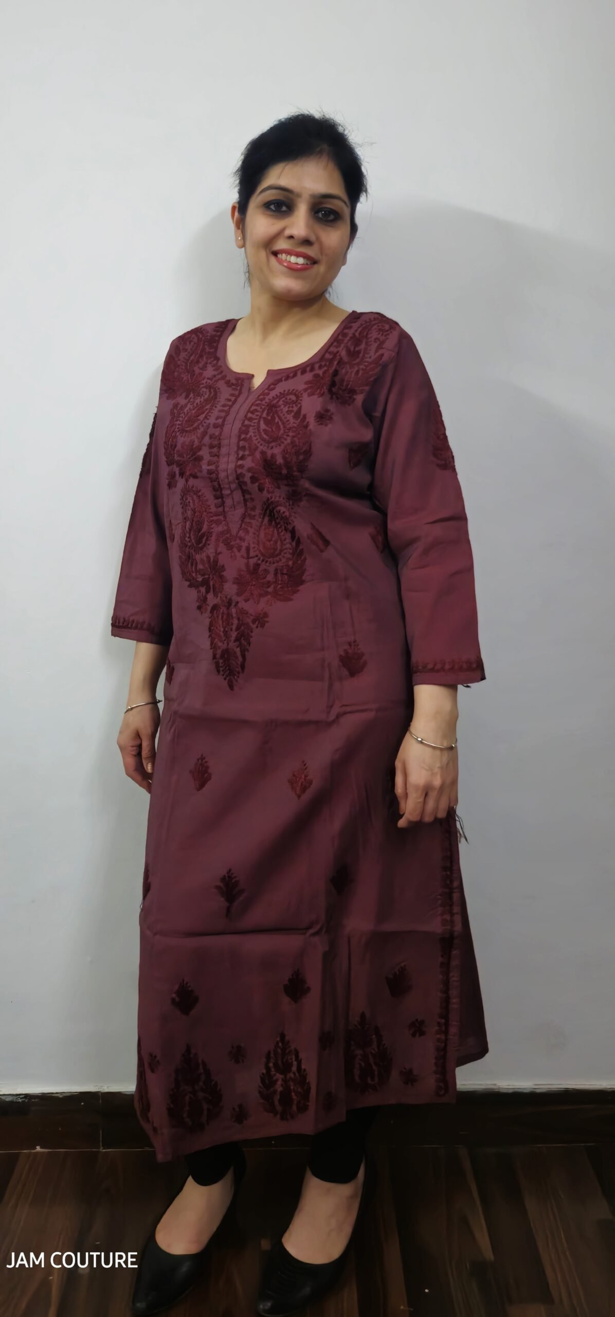 Upgrade your wardrobe with this graceful Lucknowi muslin kurti, where comfort meets everyday elegance!