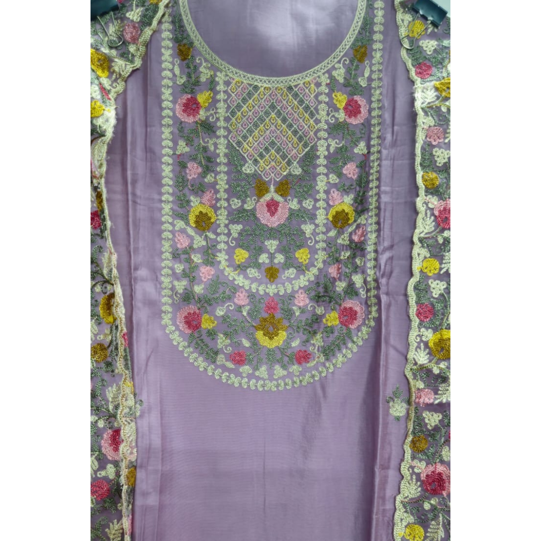 Elegant Purple Muslin Embroidered Unstitched Suit with Embroidered Dupatta