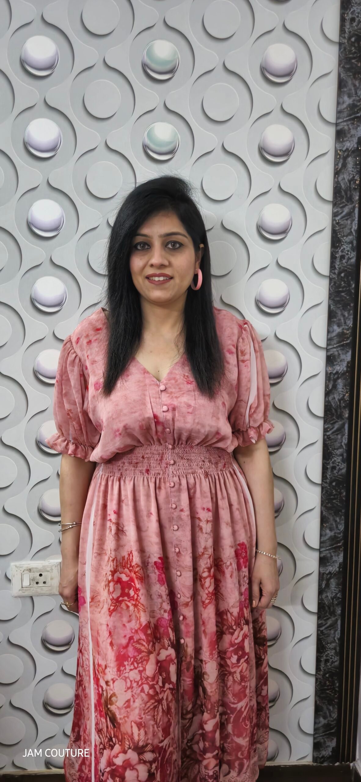 The soft pink floral print adds a touch of femininity, making it the perfect choice for cocktail parties, evening gatherings, and special occasions. Whether you’re attending a wedding, a garden party, or a dinner event, this dress ensures you look effortlessly graceful and chic.